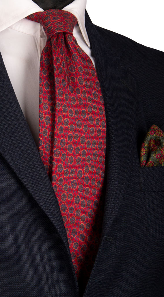Man Wool Tie Blue Yellow Flowers L926