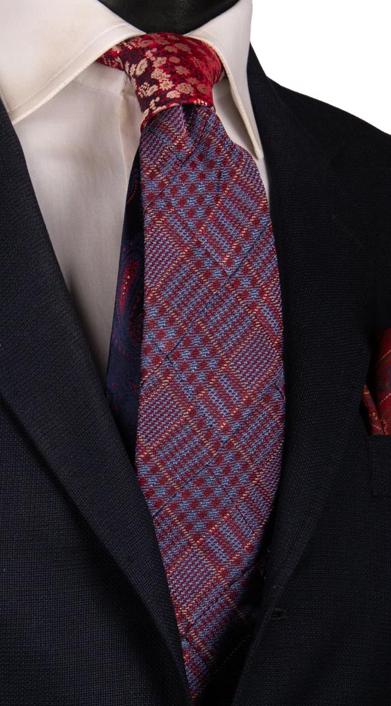 Man Mosaic Patchwork Jaspè Silk Tie Red Light Blue Checked PM775