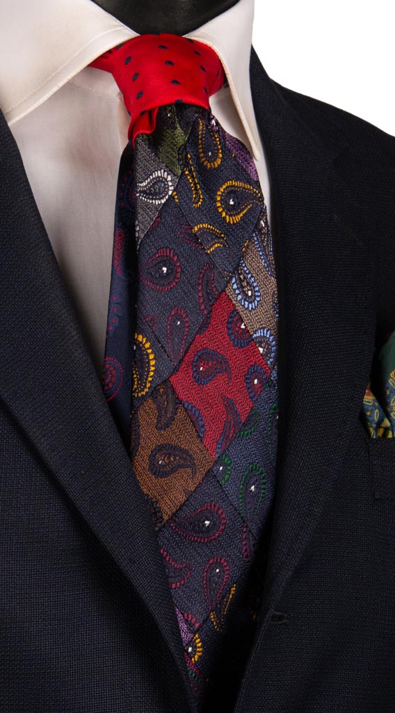 Man Mosaic Patchwork Jaspè Silk Tie Multicolor Pattern PM769