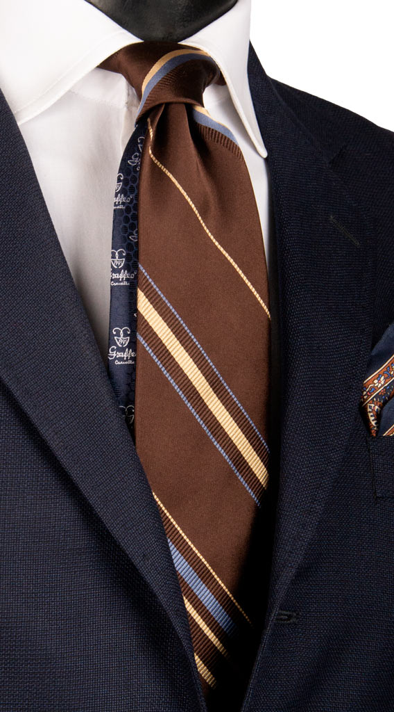 Man Brown Regimental Silk Tie Beige Blue Avio Stripes 6719