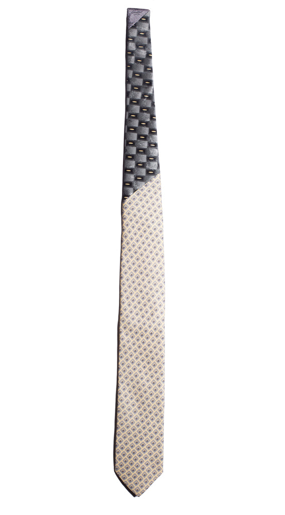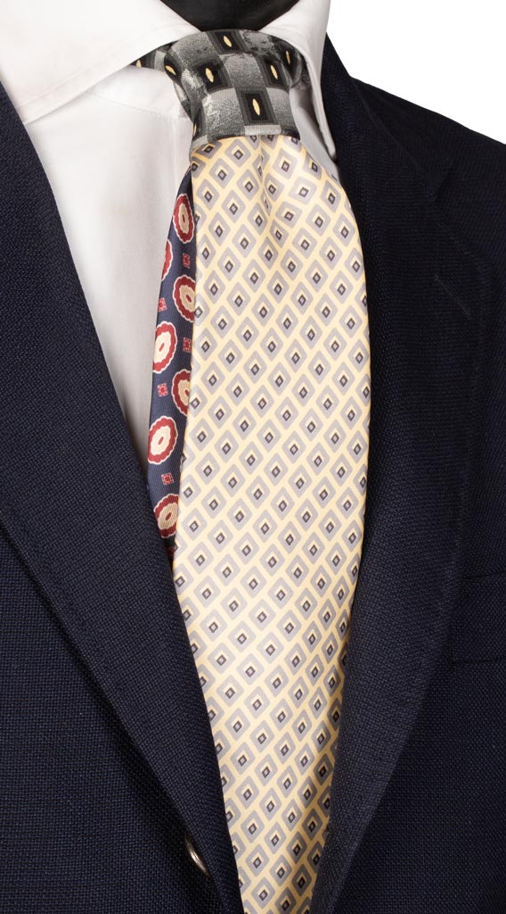 Man Yellow Printed Silk Tie Grey Pattern Grey Contrast Knot N2619