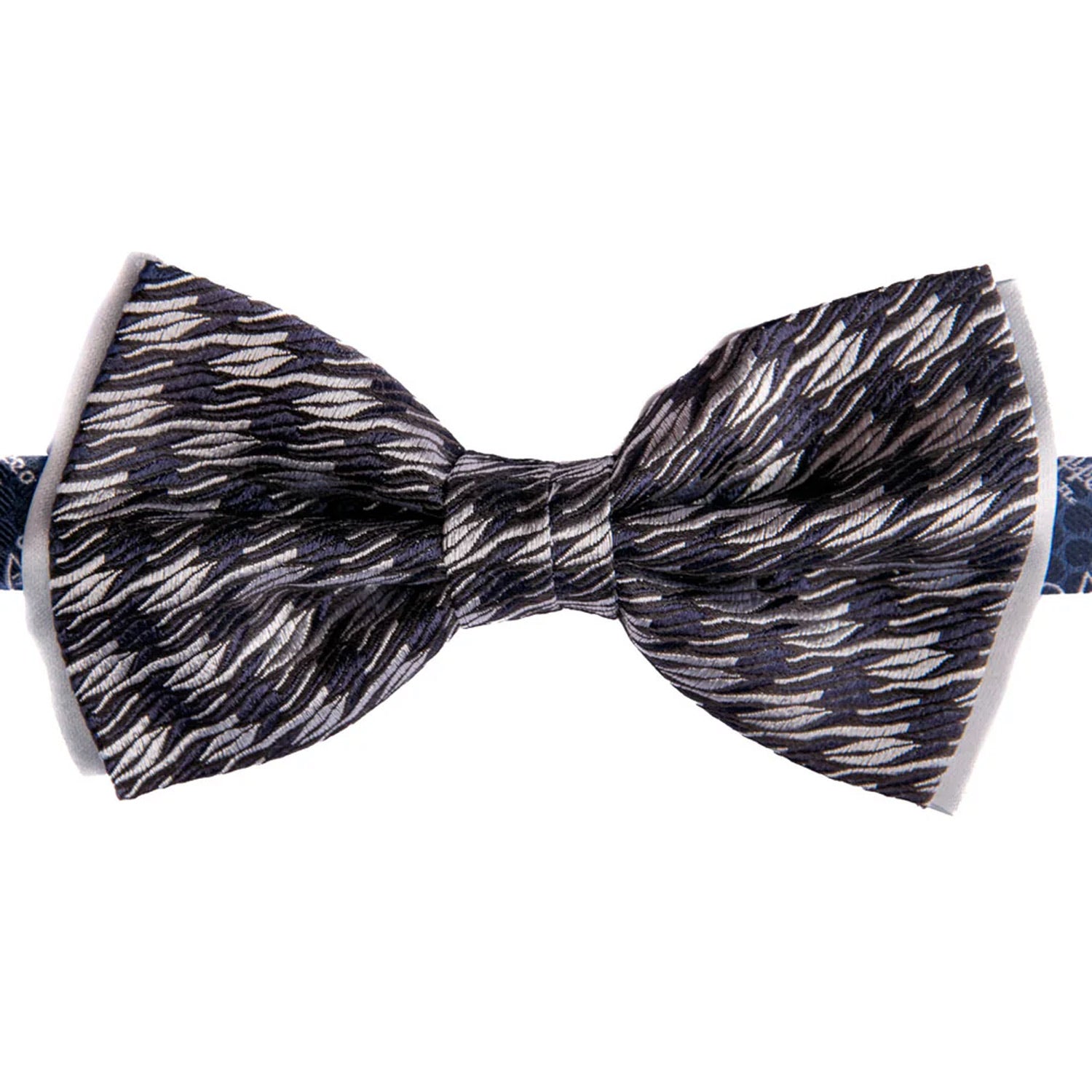 Man Blue Ceremony Silk Pre-Tied Bow Tie Silver Grey Pattern PYPap1052