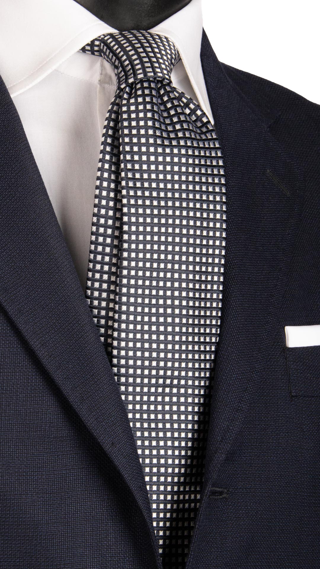 Man Ceremony Silk Tie Blue Silver Grey Pattern CY6661