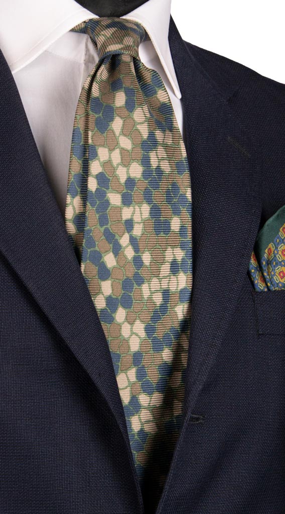Man Sage Green Vintage Silk Tie Blue Beige Pattern CV566