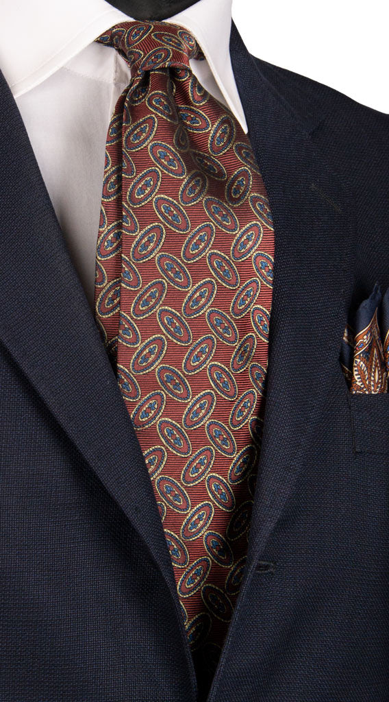 Man Strawberry Red Vintage Silk Tie Beige Blue Avio Pattern CV511