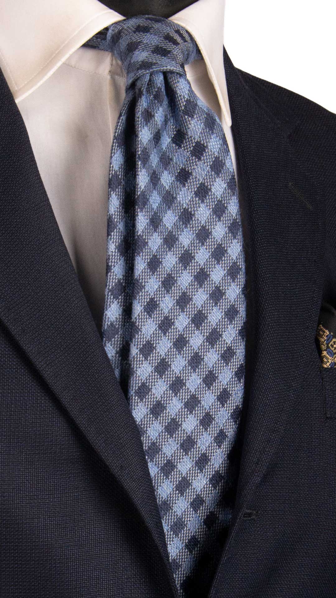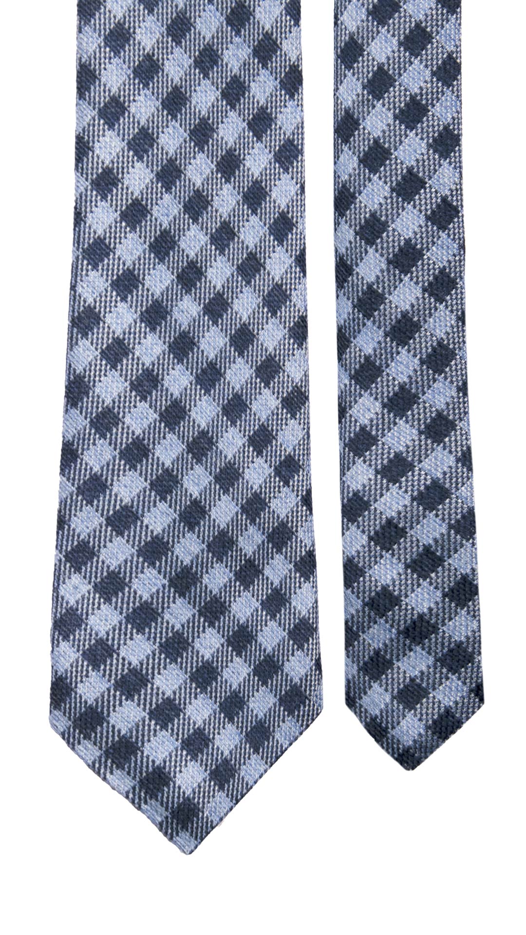 Man Ceremony Silk Tie Blue Silver Grey Checks CY6958
