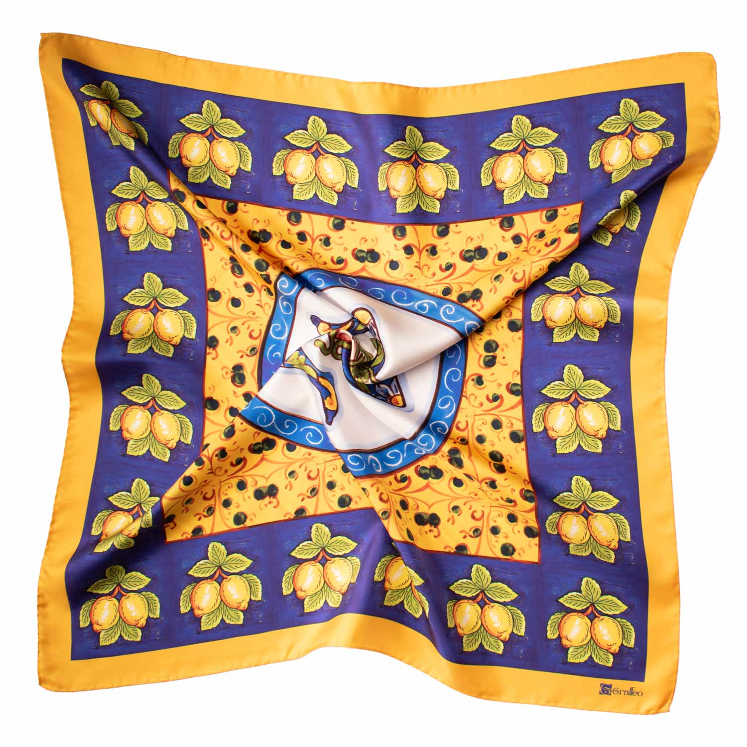 Silk Foulard with Majolica Sicilian Puppets Pattern F40
