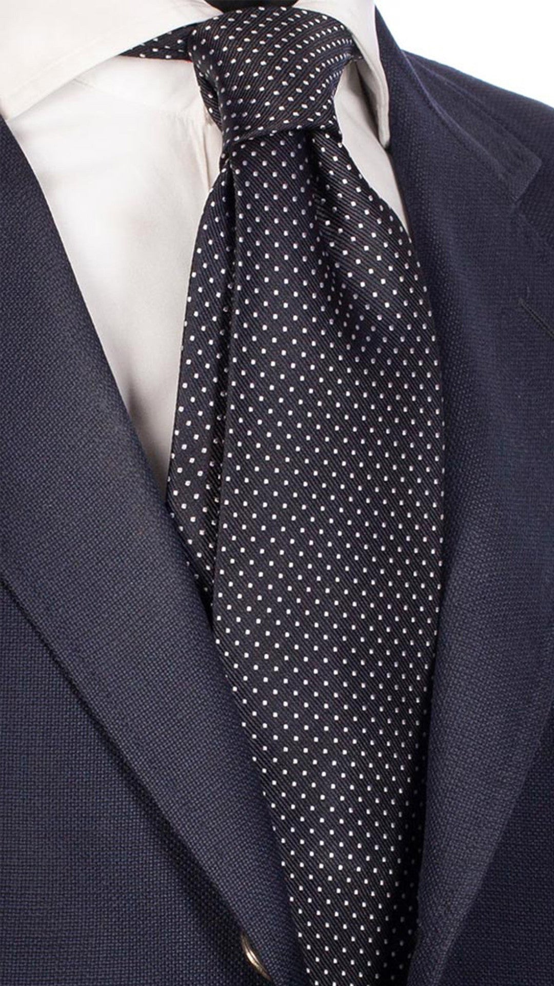 Man Deep Blue Printed Silk Tie Azure White Polka Dots 6354