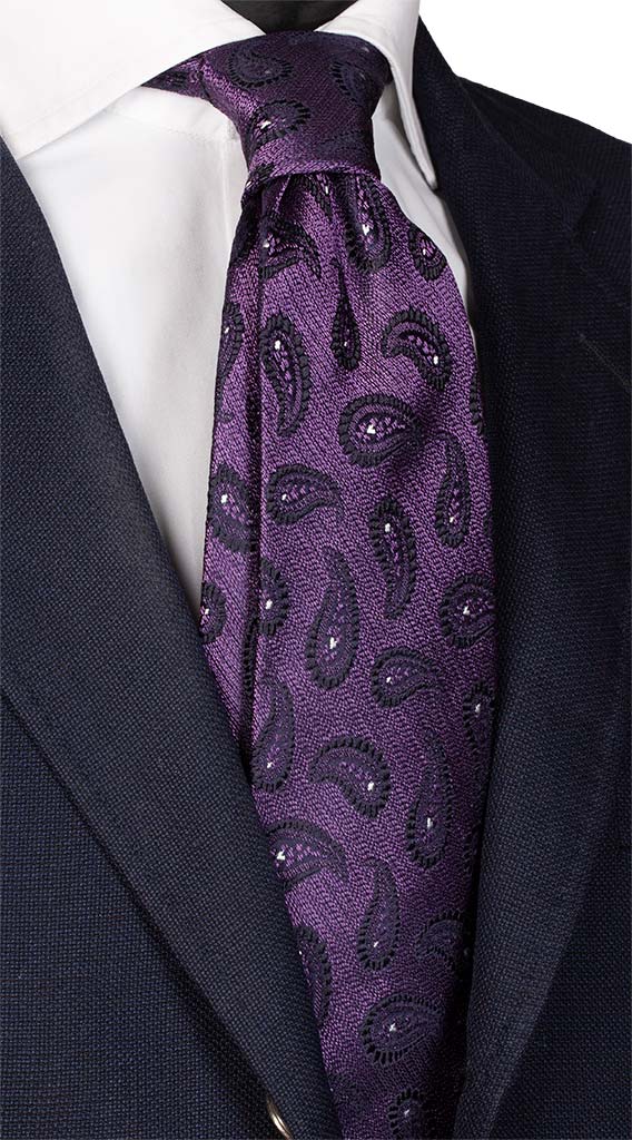 Man Violet Jaspé Silk Tie Blue White Paisley J27