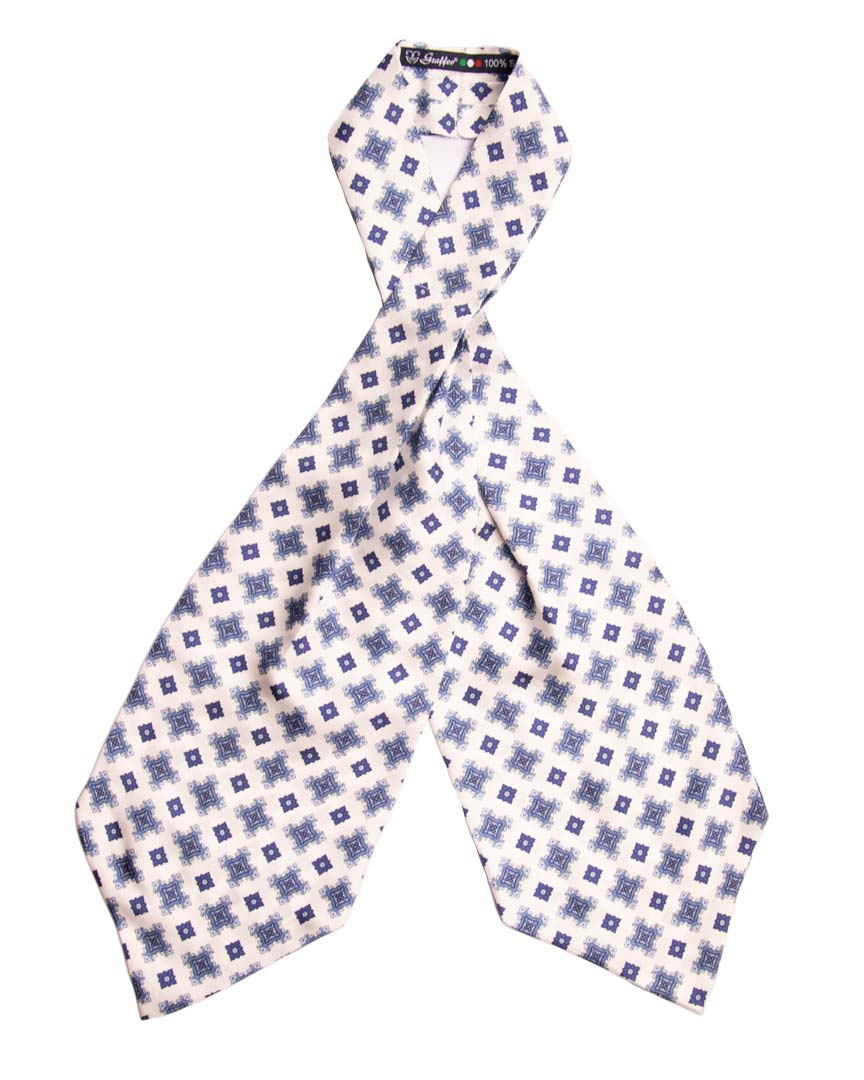 Man Blue Avio Printed Silk Ascot Blue White Paisley AS20