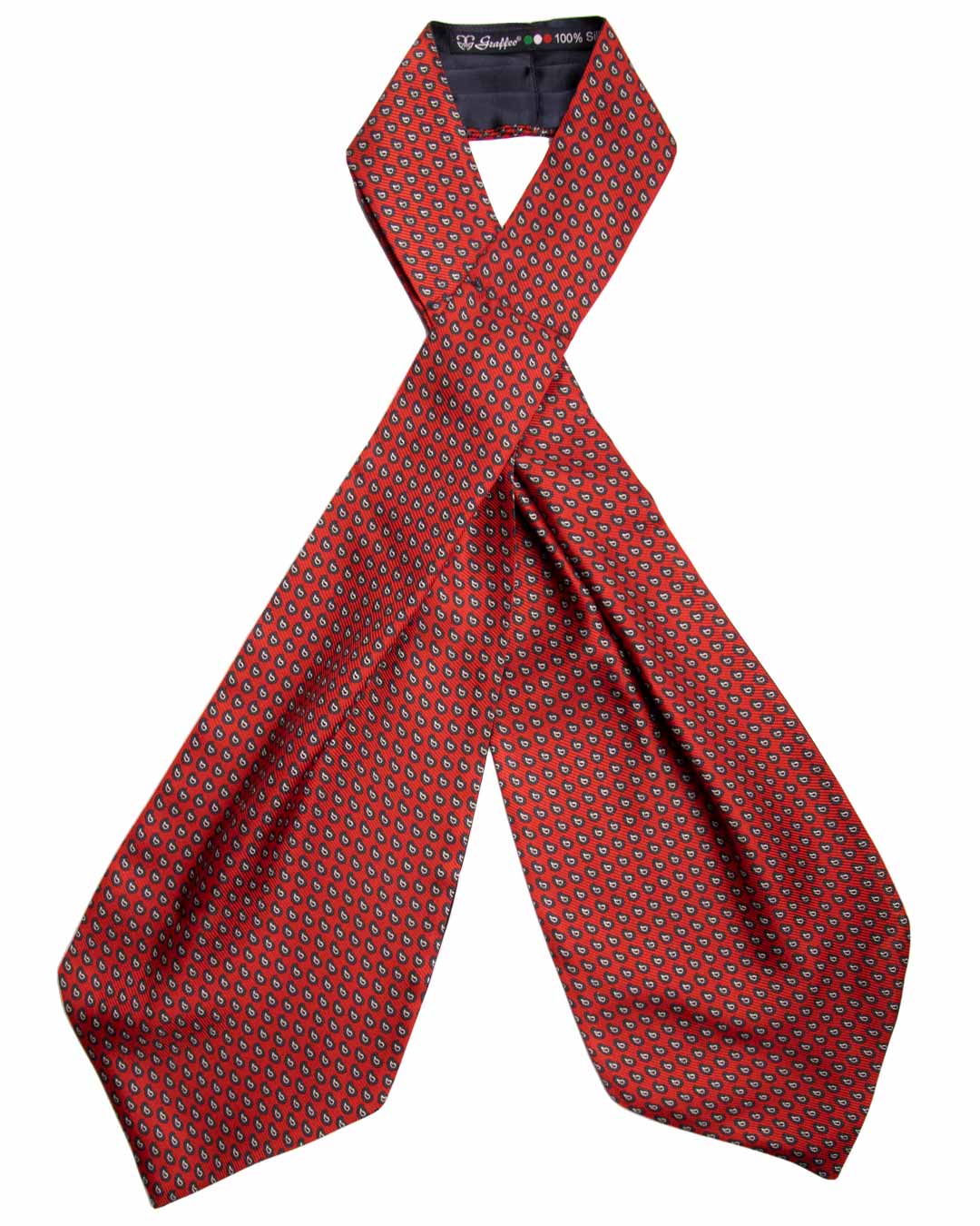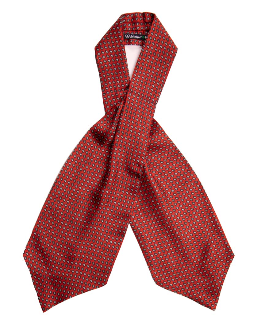 Man Red Printed Silk Ascot Orange Deep Blue Yellow Pattern AS15