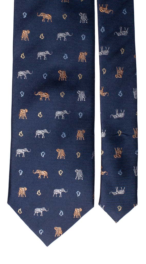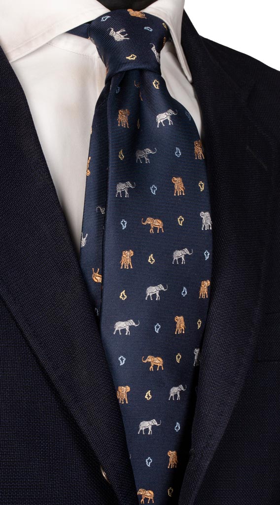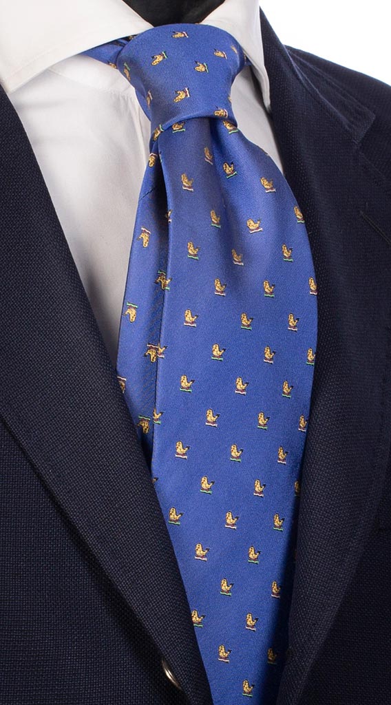 Man Printed Blue Silk Tie Animals Pattern 1310