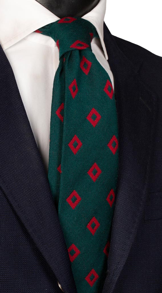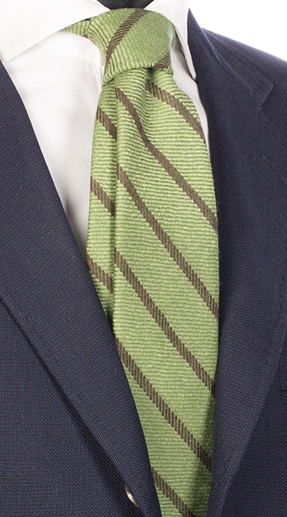 Man Green Cachemire And Wool Tie Blue Stripes