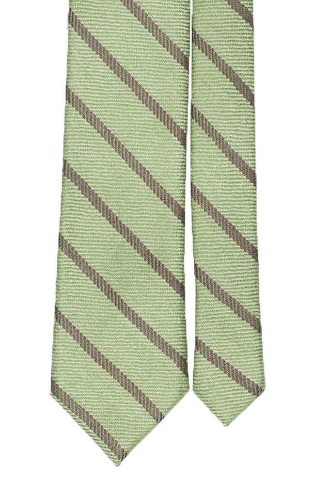 Man Regimental Silk Tie White Water Green Stripes Creased Effect 6461