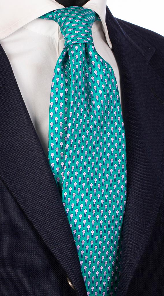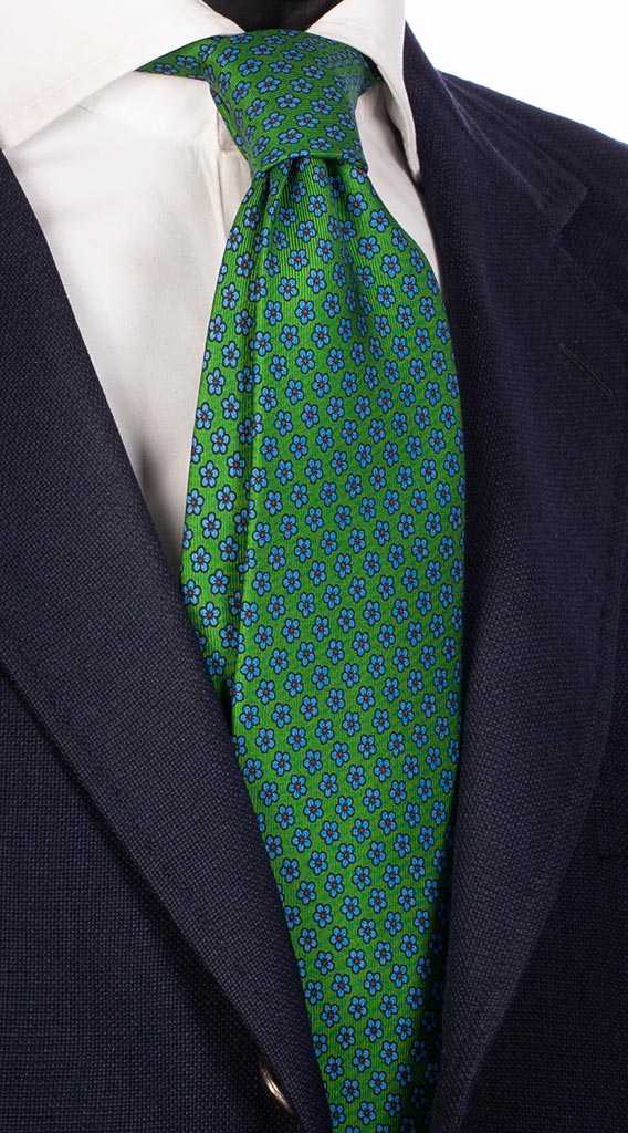 Man Blue Silk Tie Green Pattern 2220