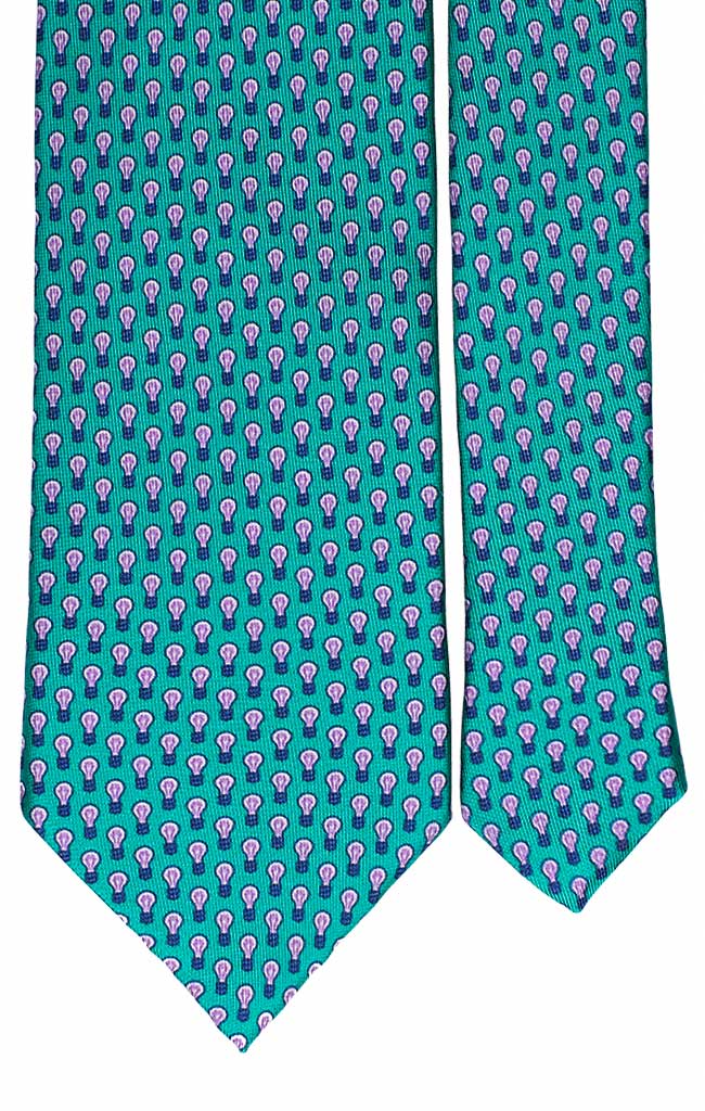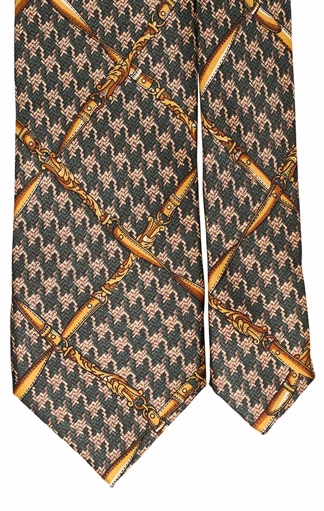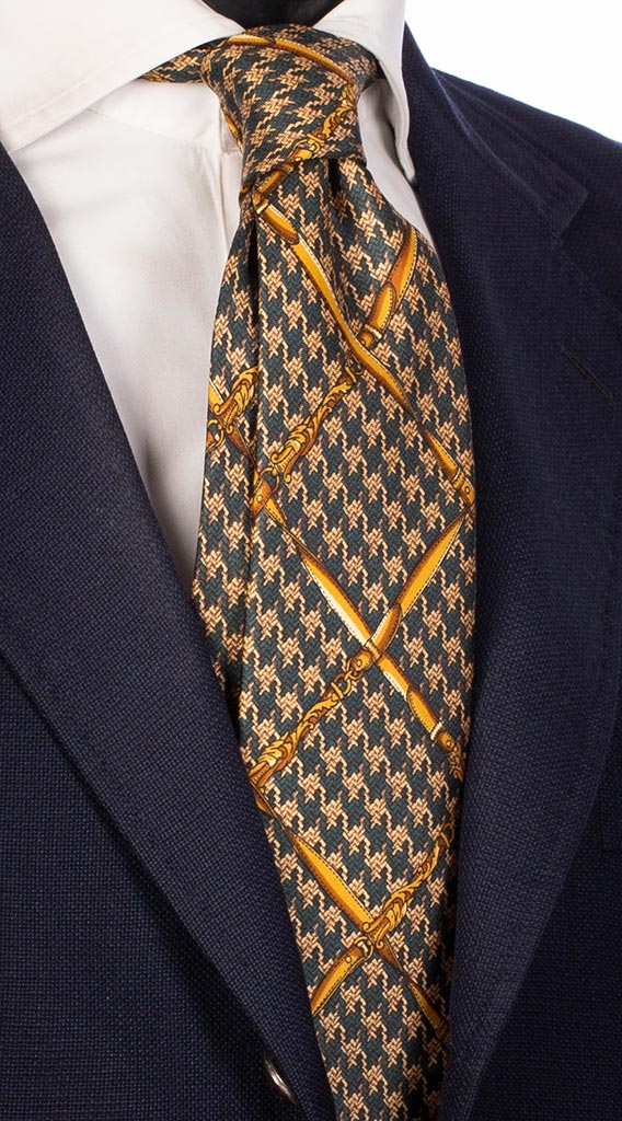 Man Green Printed Silk Tie Gold Yellow Avio Pattern 7314