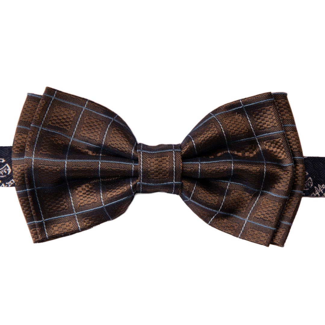 Man Light Grey Dark Blue Checked Vintage Cashmere Pre-Tied Bow Tie PAP1243