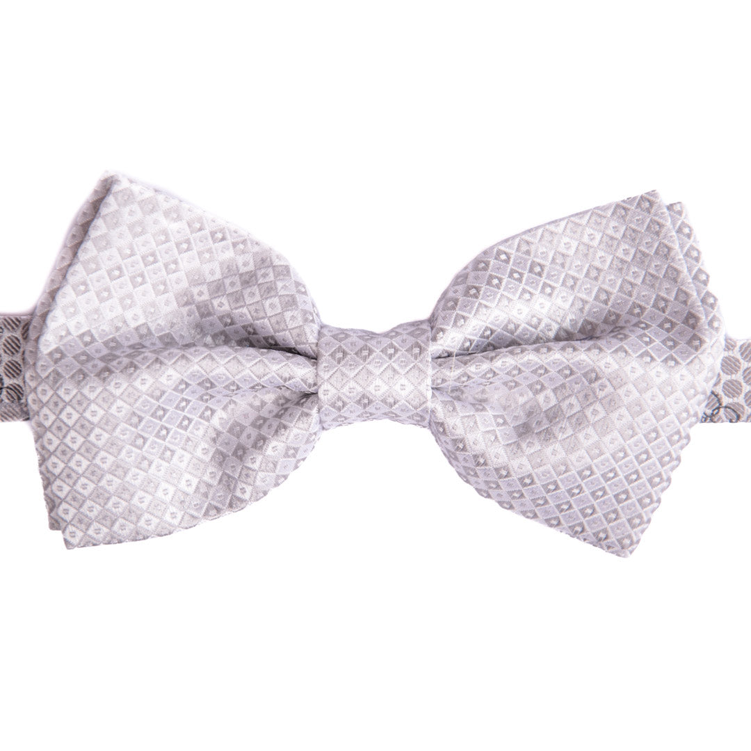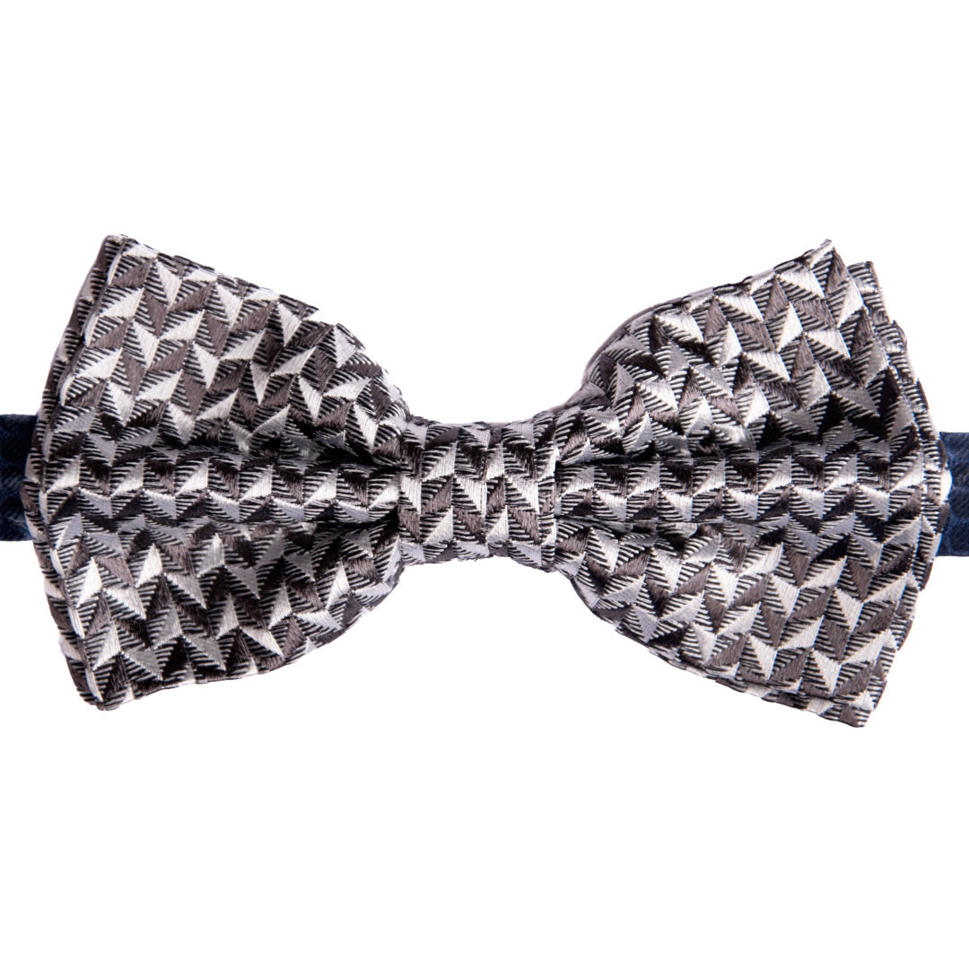 Man Ceremony Silk Pre-Tied Bow Tie Silver Grey Blue Pattern PYPap1043