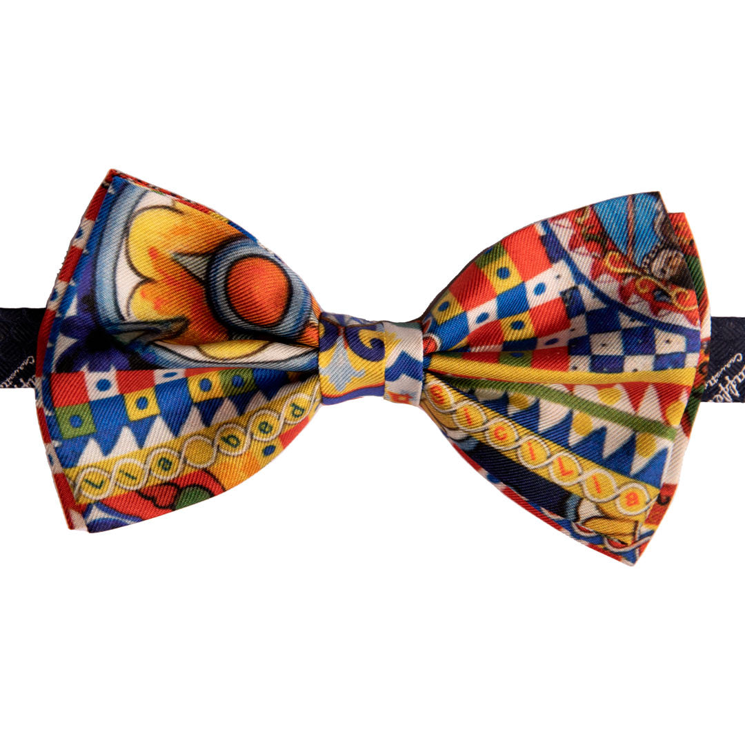 Man Sicilian Printed Satin Pre-Tied Bow Tie Multicolor Majolica PS176