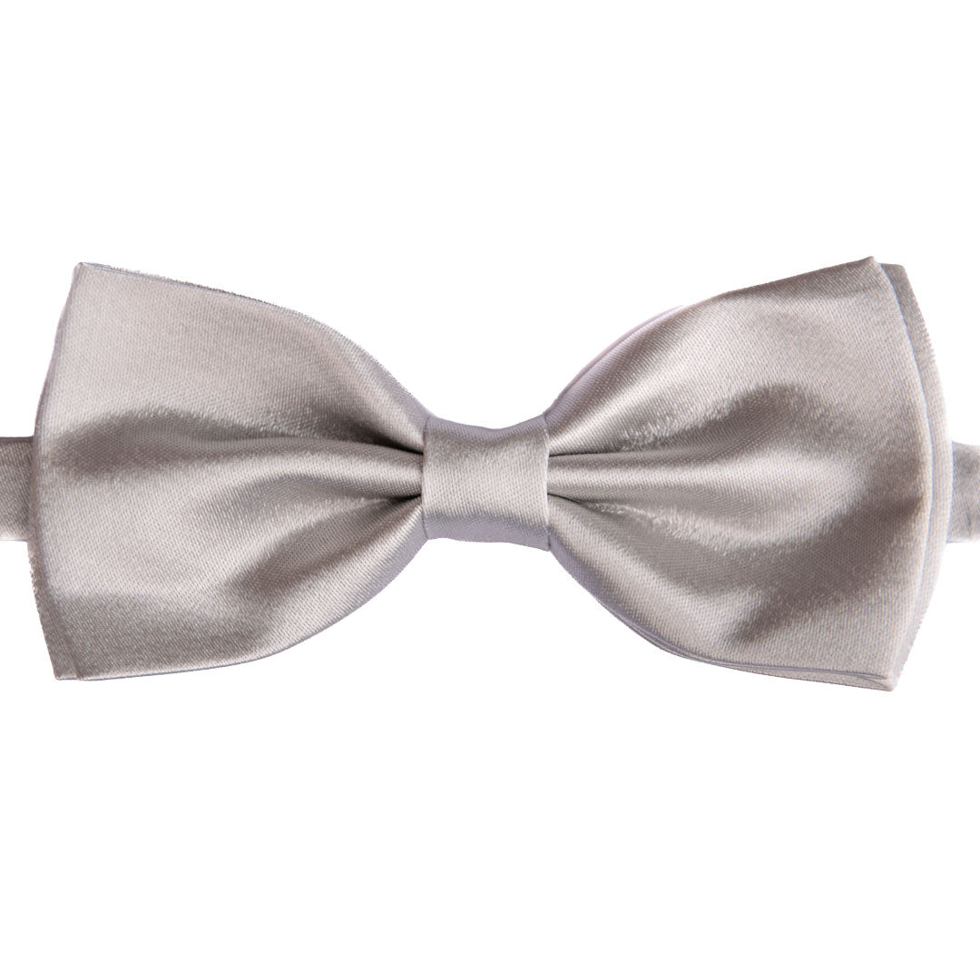 Man Solid Gray Pattern Satin Pre-Tied Bow Tie R2235