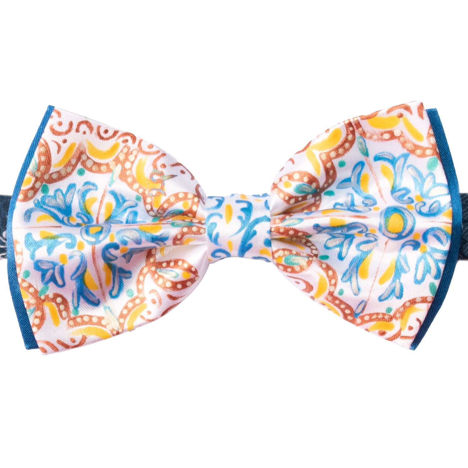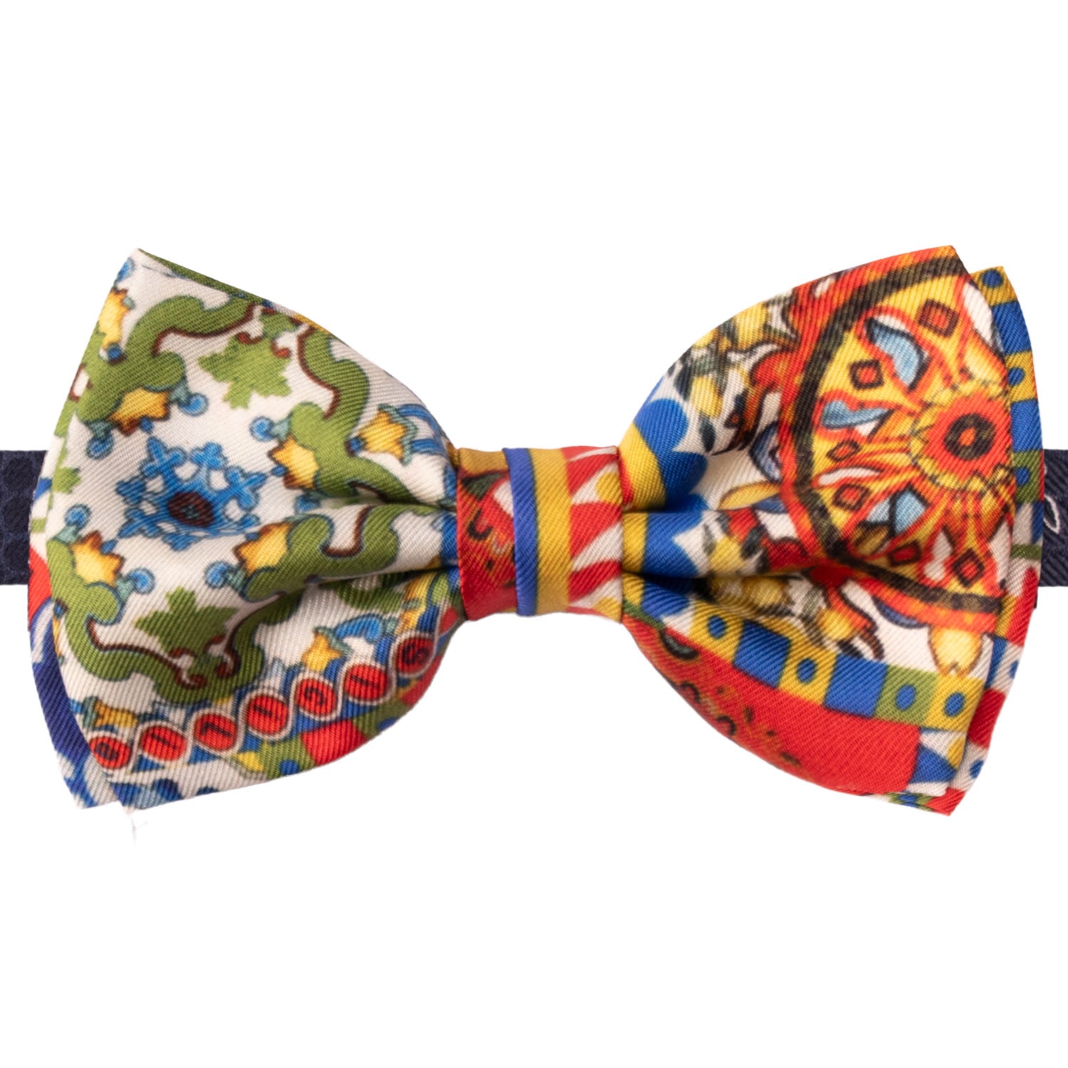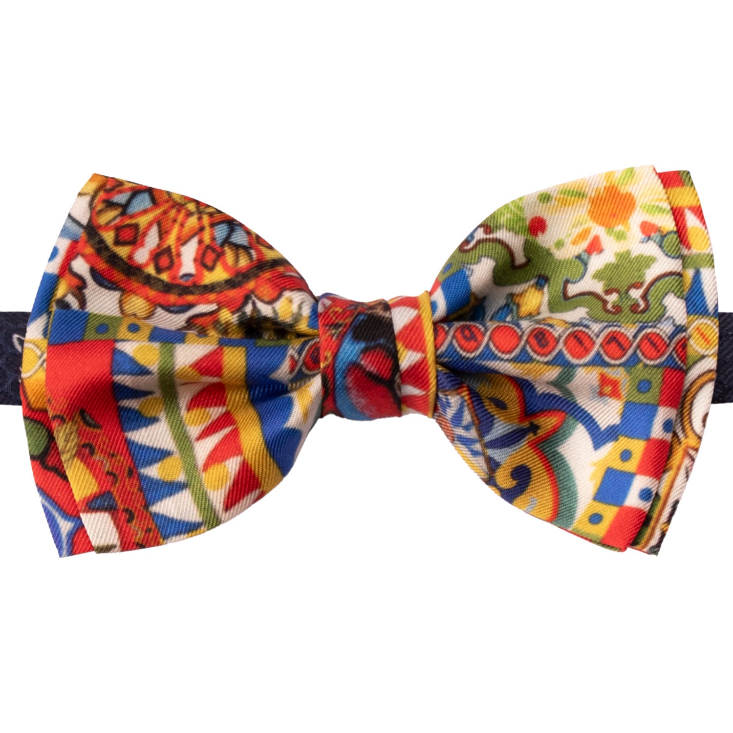 Man Sicilian Printed Satin Pre-Tied Bow Tie Multicolor Majolica PS174