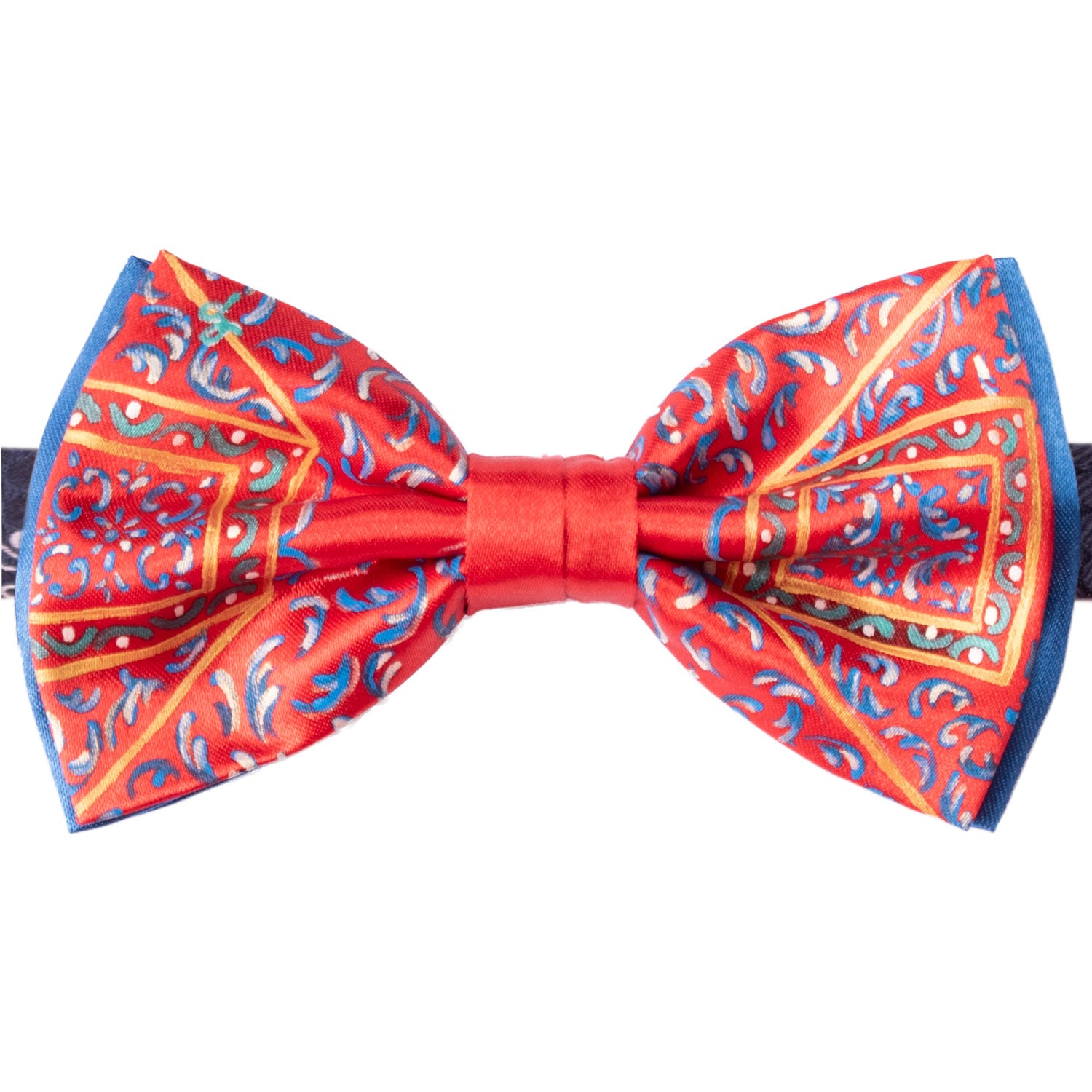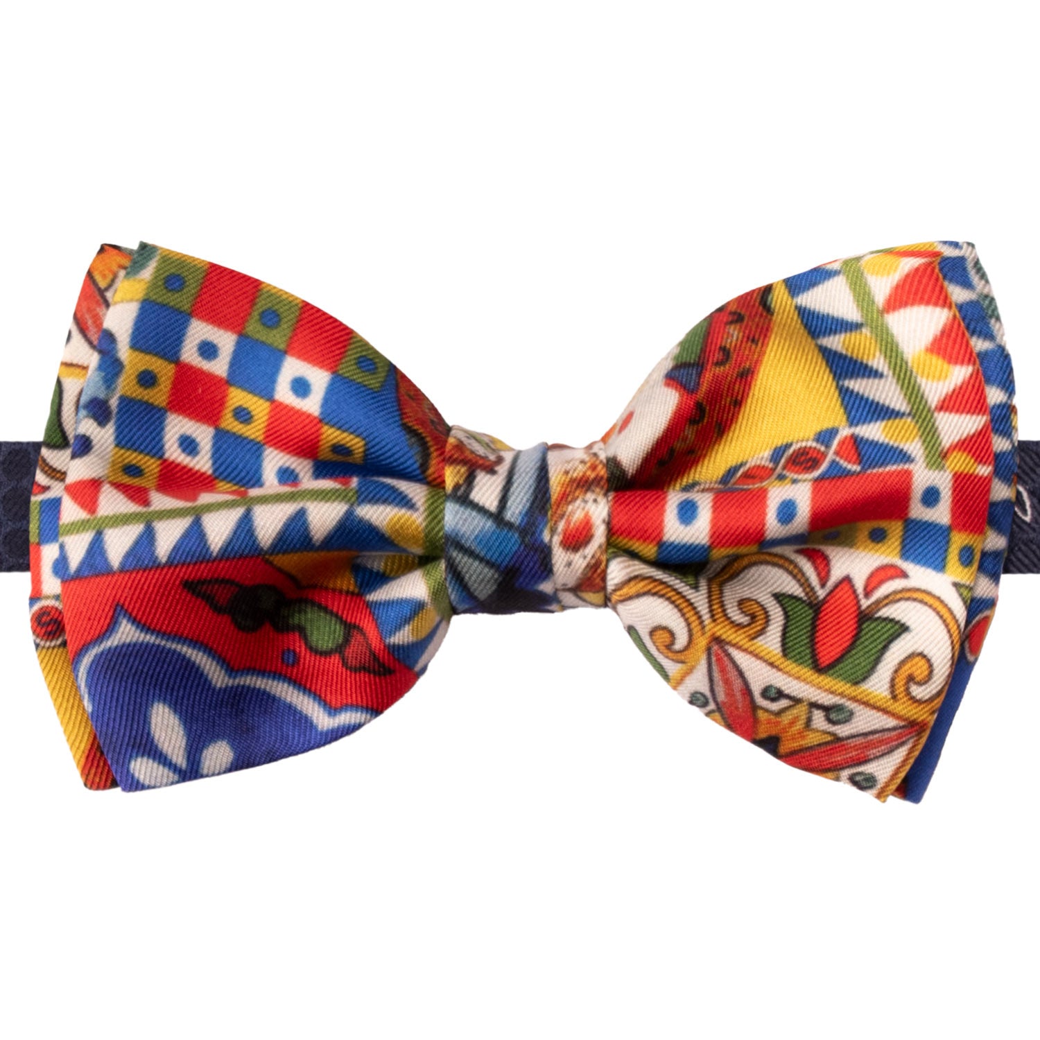 Man Sicilian Printed Satin Pre-Tied Bow Tie Multicolor Majolica PS176