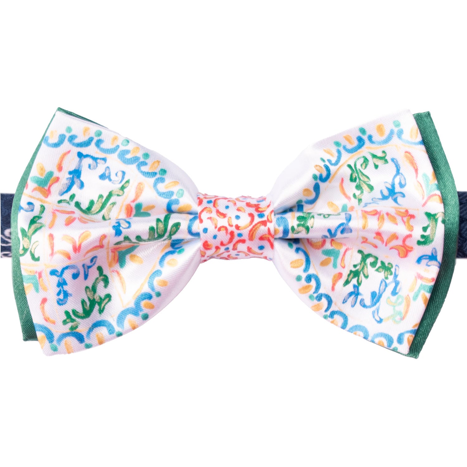 Man Sicilian Printed Satin Pre-Tied Bow Tie Multicolor Majolica PS175