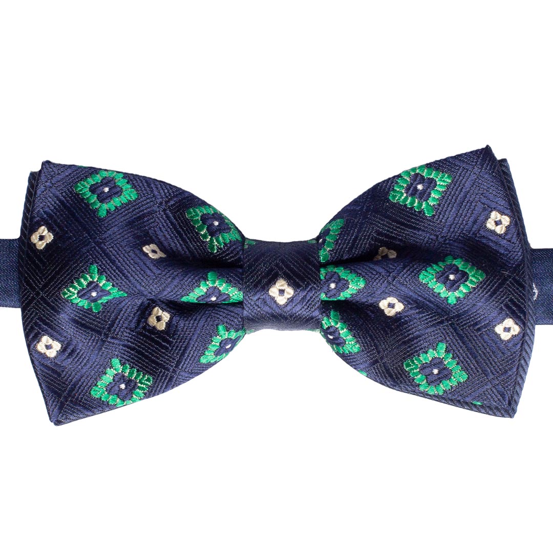 Man Blue Silk Pre-Tied Bow Tie Green Beige Pattern Pap619