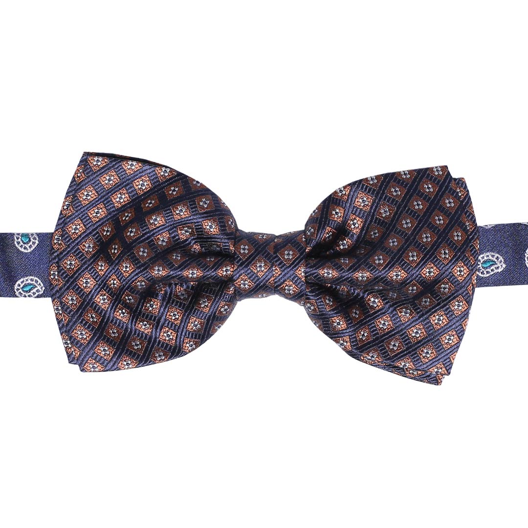 Man Brown Silk Pre-Tied Bow Tie Blue Navy Pattern White Point Pap181