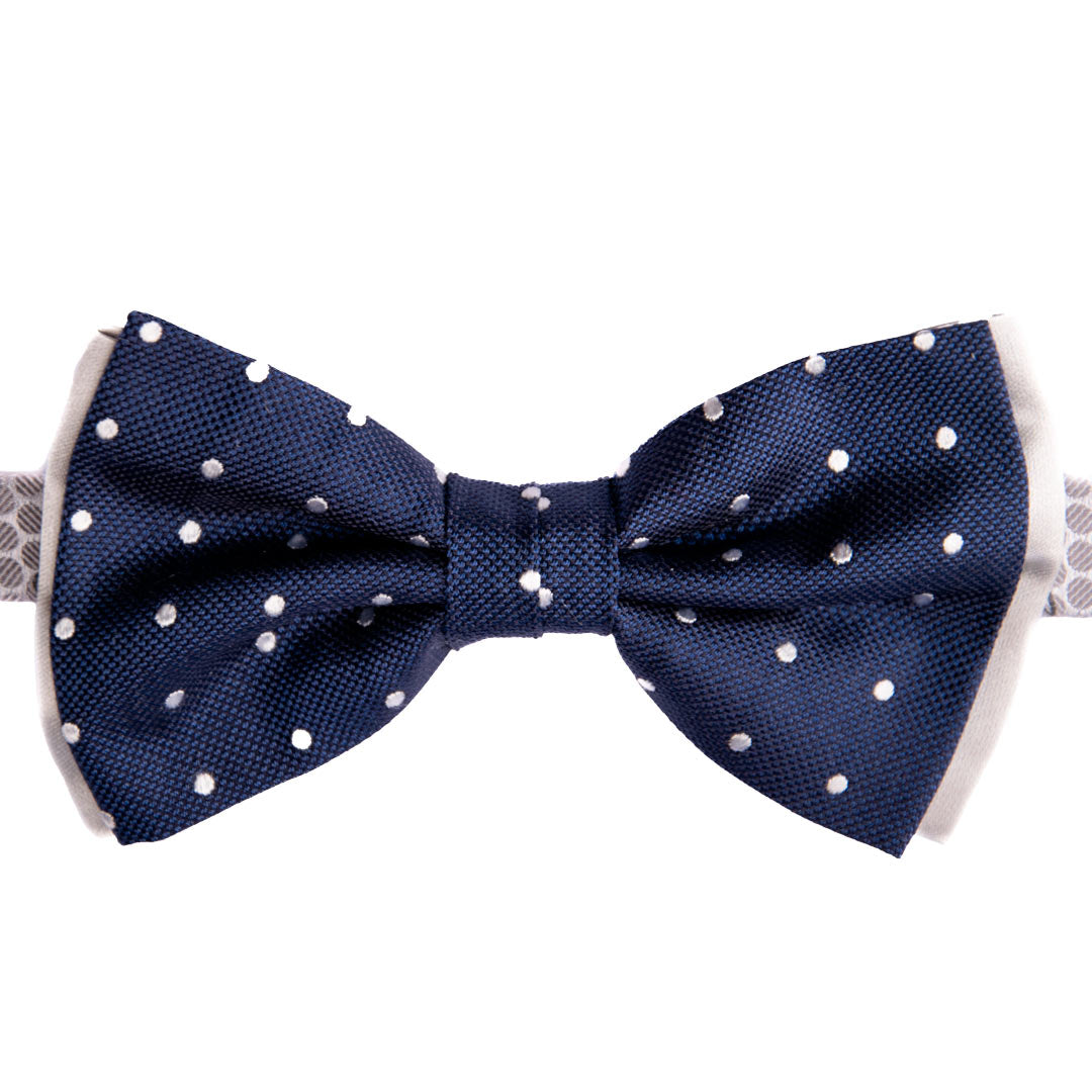 Man Grey Ceremony Silk Pre-Tied Bow Tie Blue Polka Dots PYPap1062