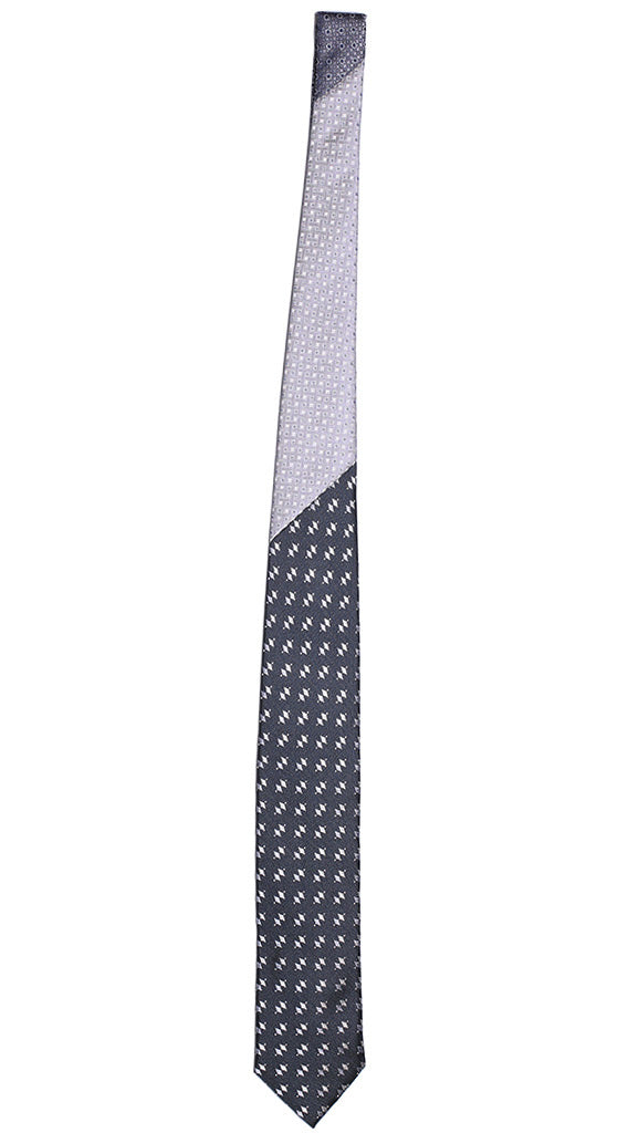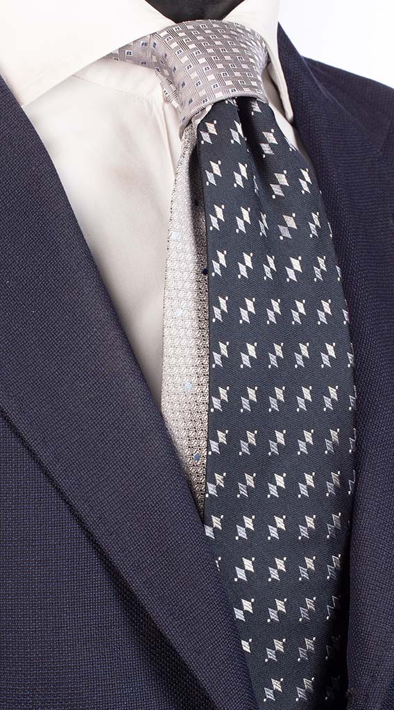 Man Blue Ceremony Tie Grey Pattern. Grey Blue Contrast Knot N1307