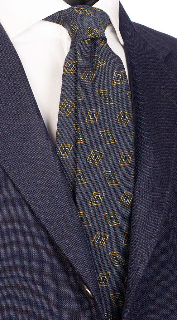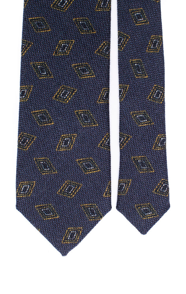 Man Blue Wool Silk Tie Yellow Pattern L492
