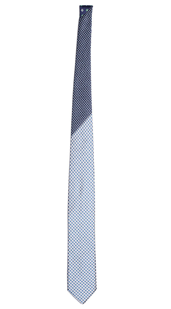 Cravatta a Quadri Bianco Celeste Blu Nodo in Contrasto Blu a Fantasia Celeste N1785