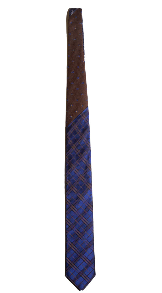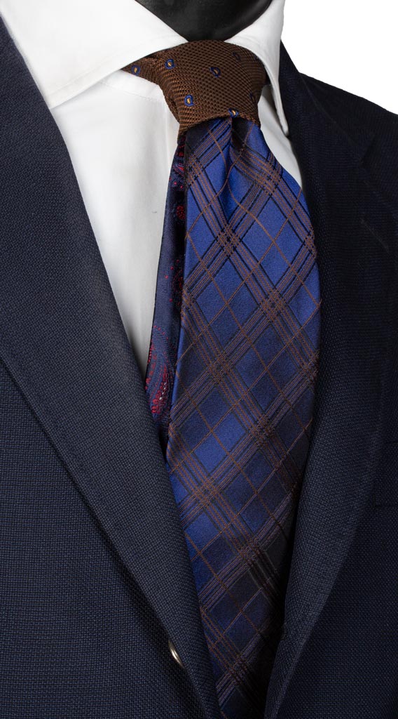Cravatta a Quadri Bluette Marrone Nodo in Contrasto Marrone Paisley N2299