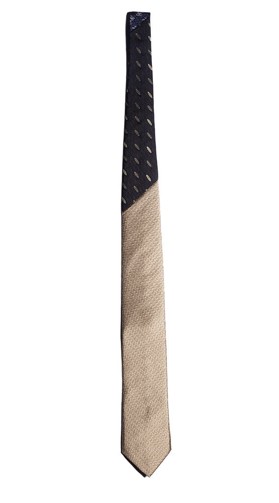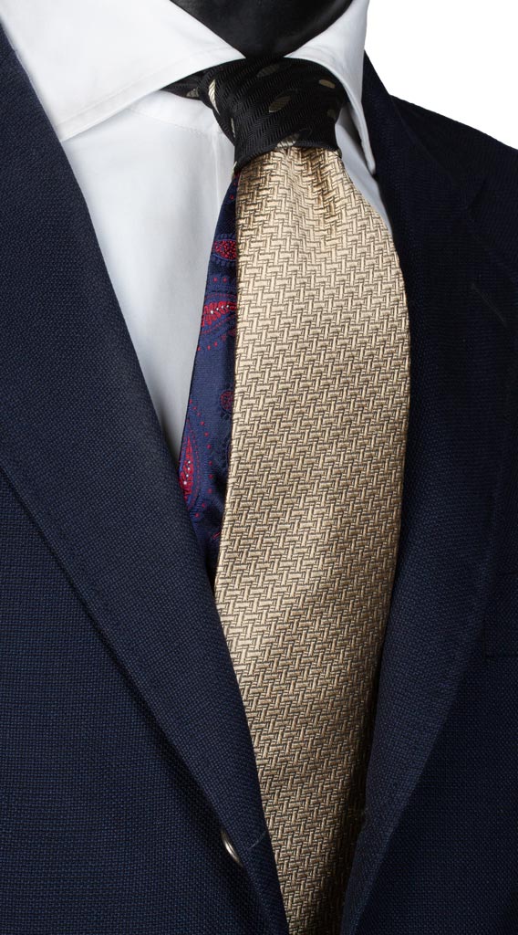 Cravatta Beige Fantasia Grigia Nodo in Contrasto Nero N2197