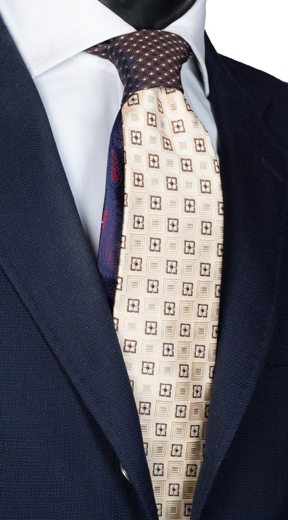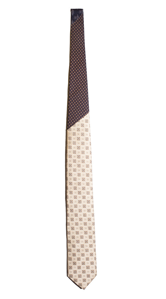 Cravatta Beige Fantasia Marrone Nodo in Contrasto Marrone Blu N2250