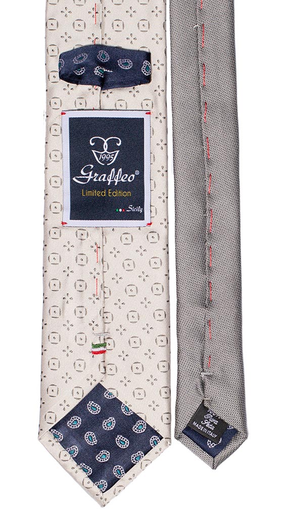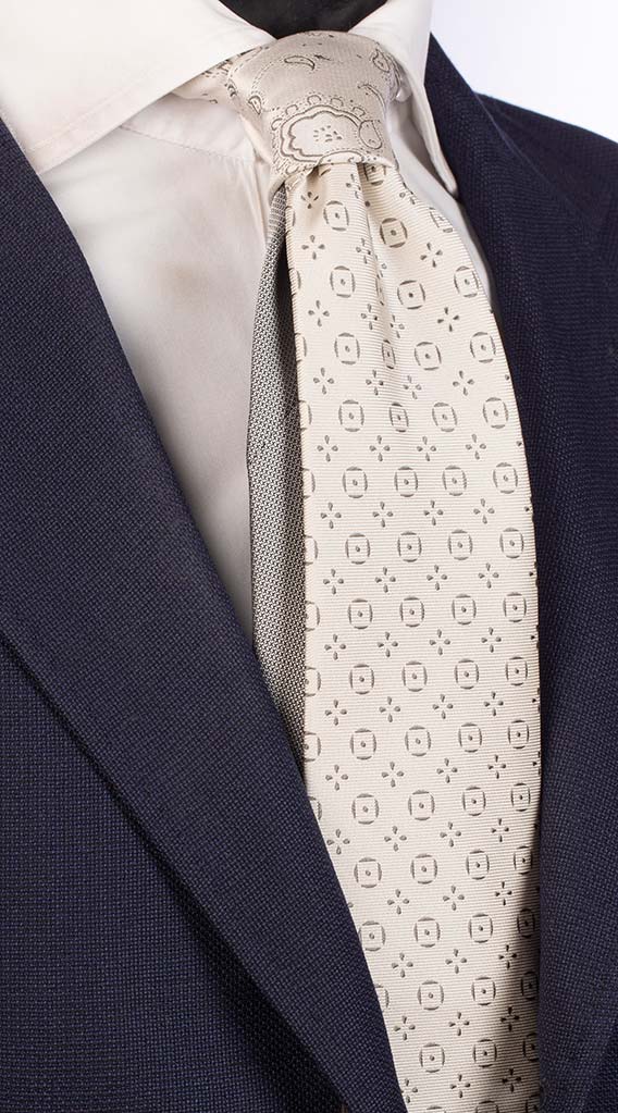 Cravatta Bianco Perla Fantasia Grigia Nodo a Contrasto Bianco Perla Fantasia Grigia N1007