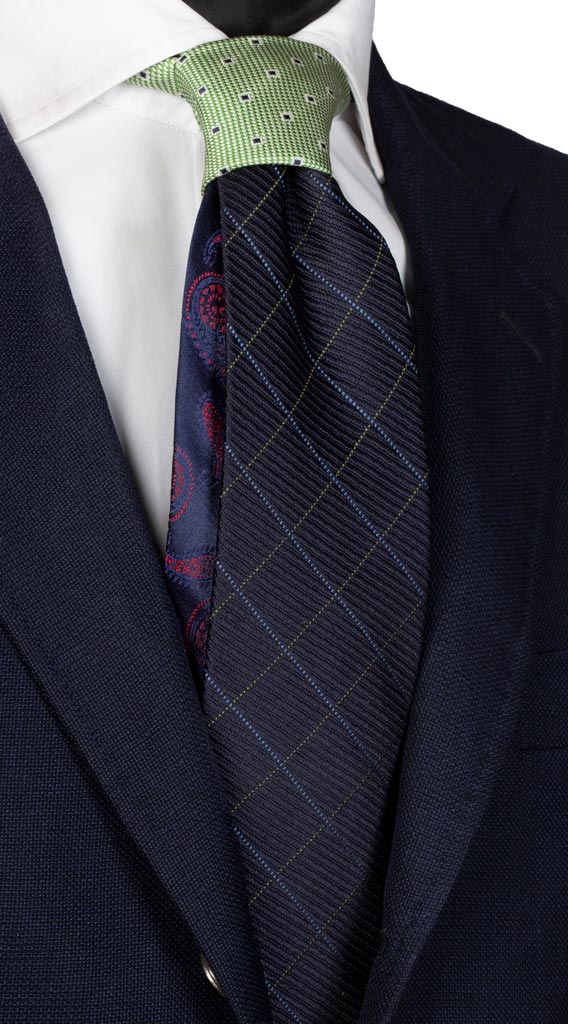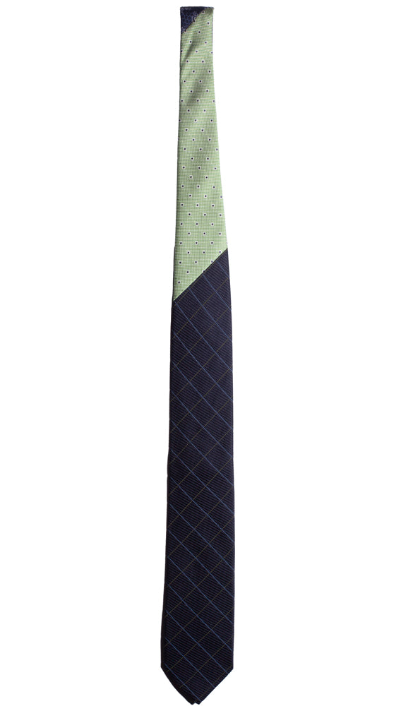 Cravatta Blu a Quadri Celeste Verde Nodo in Contrasto Verde Blu Bianca N2386