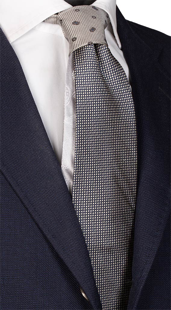 Cravatta Cerimonia Blu Champagne Nodo in Contrasto Grigio N2122