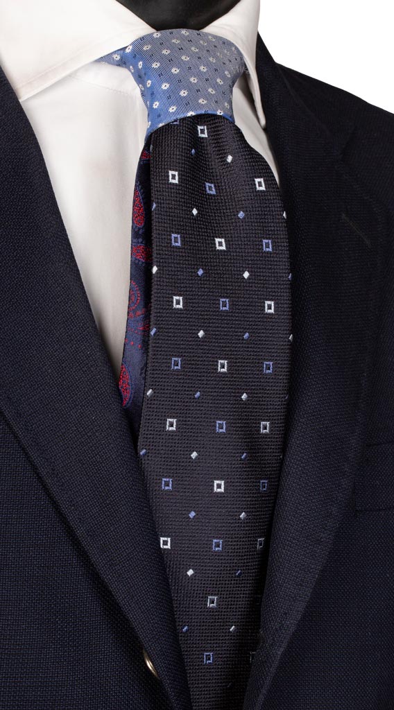 Cravatta Blu Fantasia Celeste Blu Avio Nodo in Contrasto Blu Avio Fantasia N2817