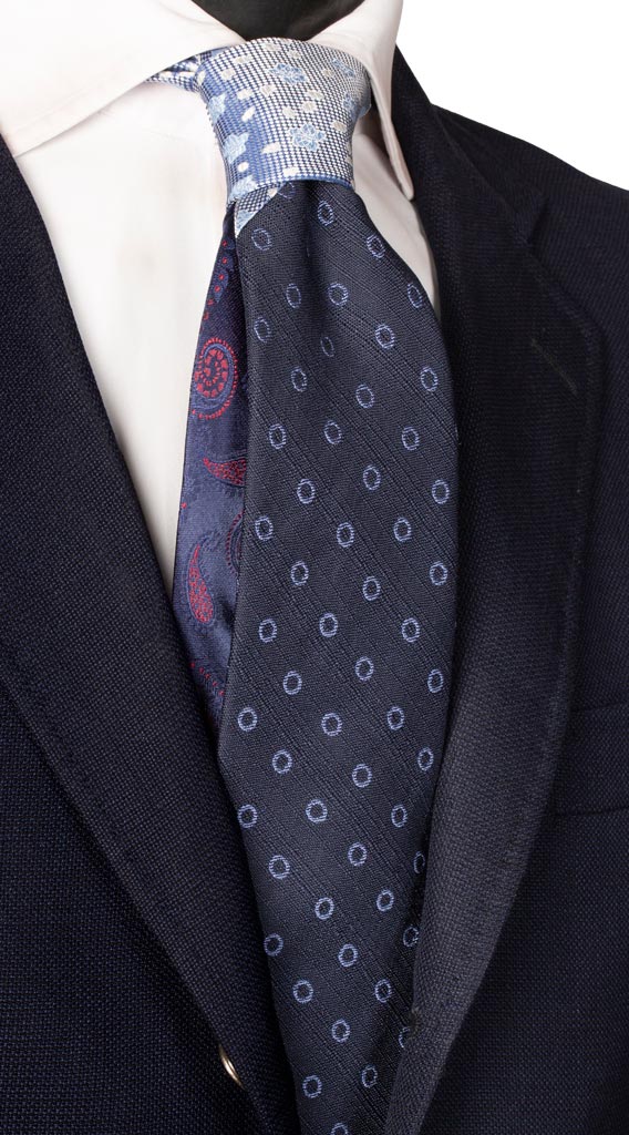 Cravatta Blu Fantasia Celeste Nodo in Contrasto Celeste Bianco a Fiori N2834