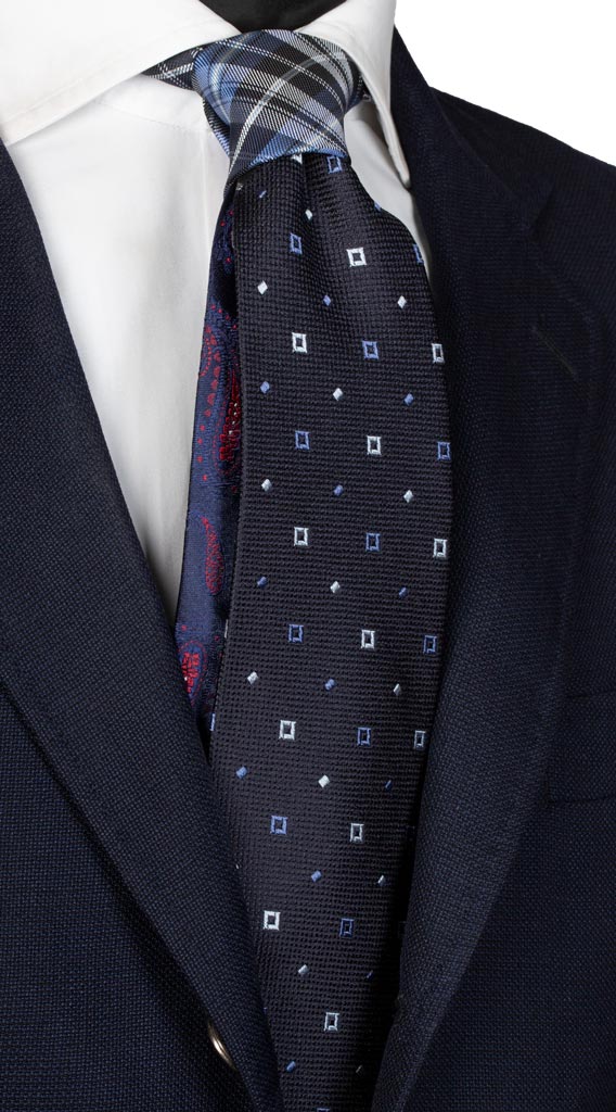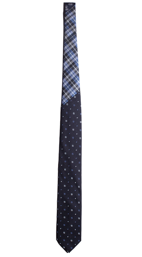 Cravatta Blu Fantasia Grigia Nodo in Contrasto a Quadri Celeste Blu N2381