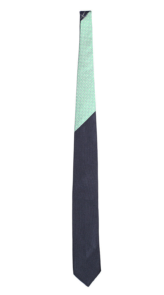 Cravatta Blu Tinta Unita Nodo a Contrasto Verde a Pois Blu Bianco N764