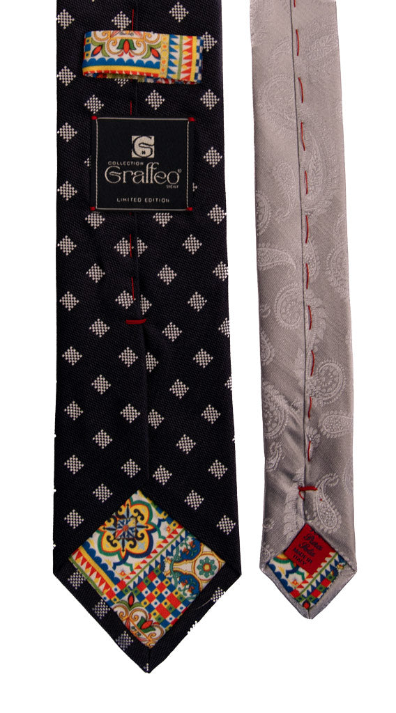Cravatta Cerimonia Blu Fantasia Grigio Argento Nodo in Contrasto Grigio Argento N3050