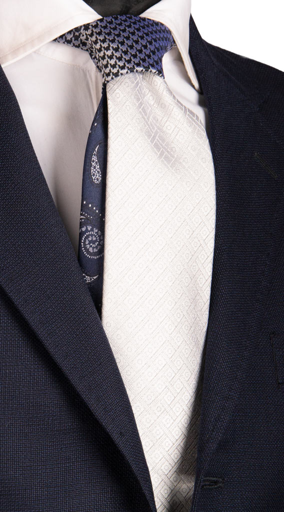 Cravatta Cerimonia Grigia Argento Fantasia Nodo in Contrasto Nero Grigio Fantasia N2979