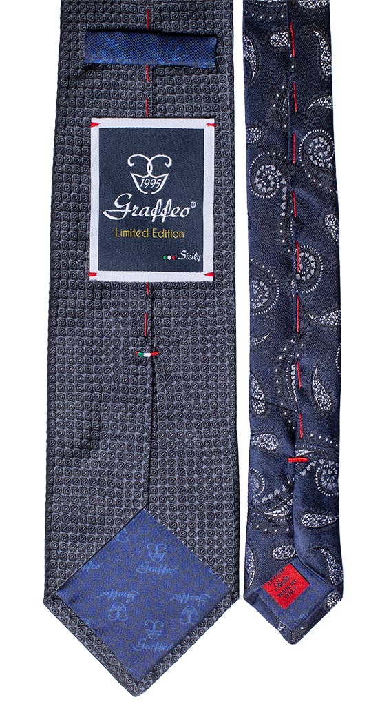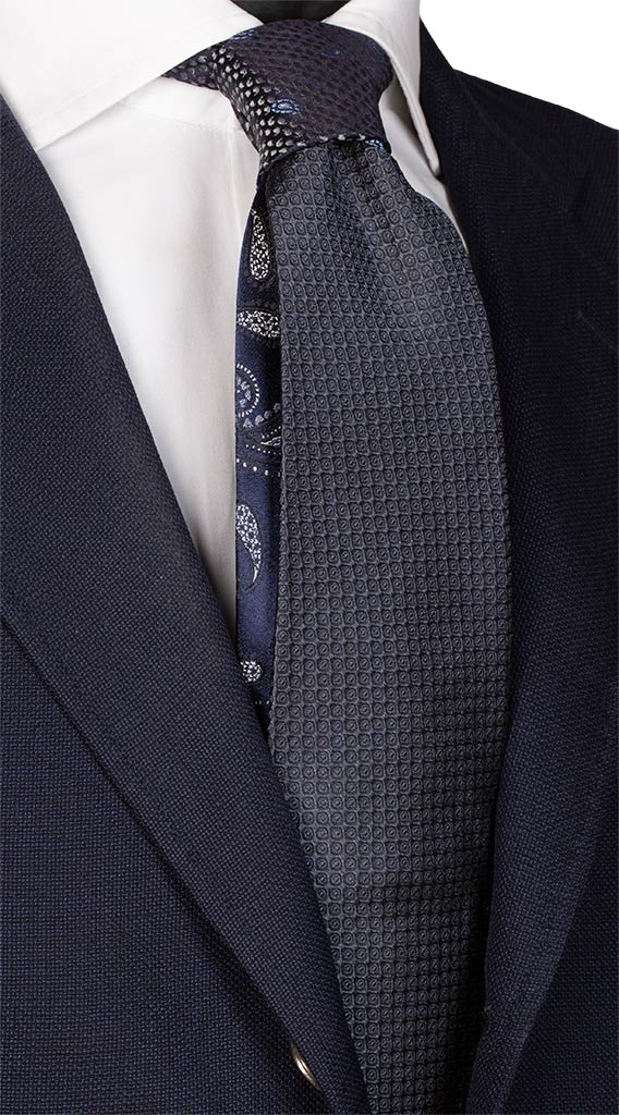 Cravatta Cerimonia Grigia Nodo in Contrasto Blu Nero Paisley N2080