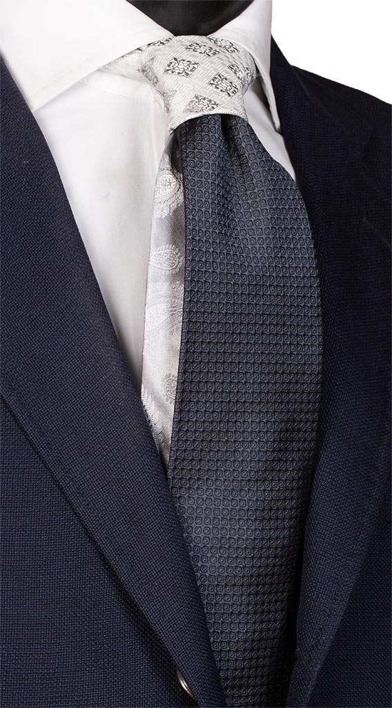Cravatta Cerimonia Grigio Scuro Nodo in Contrasto Bianco Grigio N2040