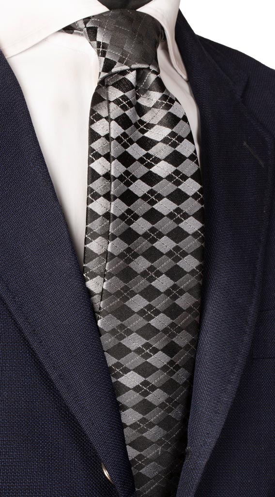 Cravatta da Cerimonia di Seta Grigia Fantasia Nera CY6488