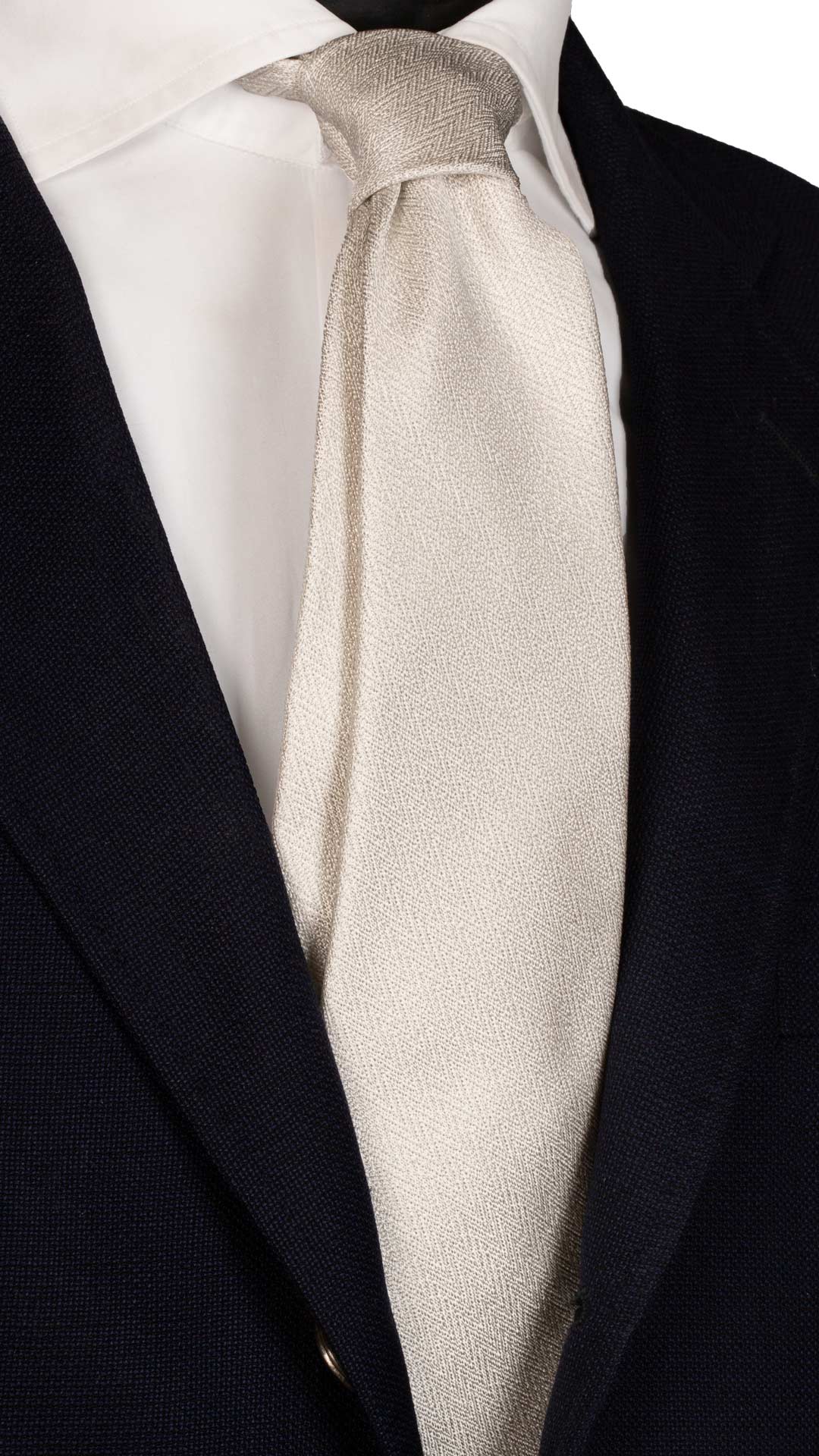 Cravatta da Cerimonia di Seta Grigio Argento Fantasia Lisca di Pesce CY6288