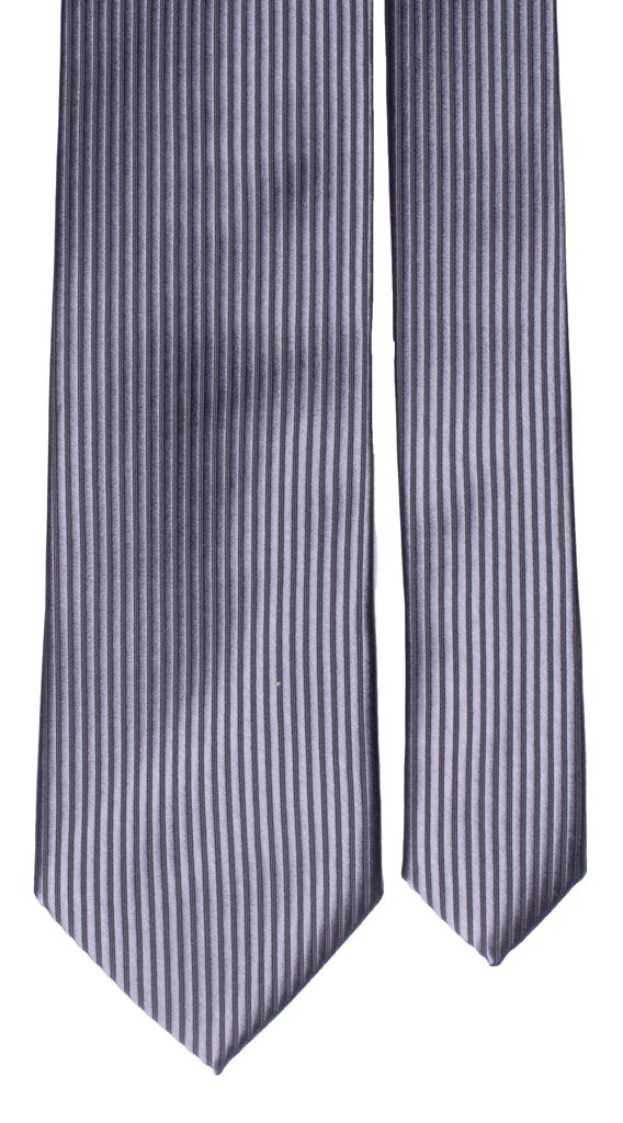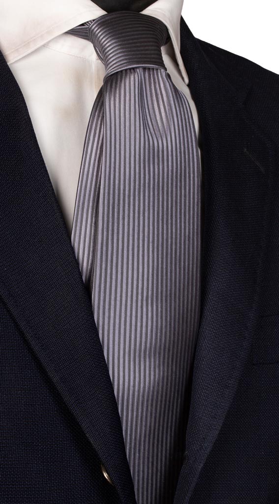 Cravatta da Cerimonia di Seta Grigio Scuro Righe Verticali Tono su Tono CY1496